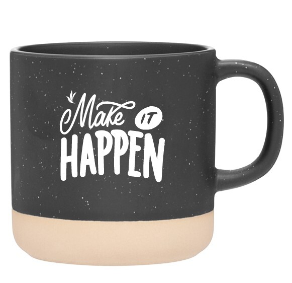 sku: BIQ37311 oz ceramic mug with matte colored exterior, matte colored interior, unglazed base, and speckles.