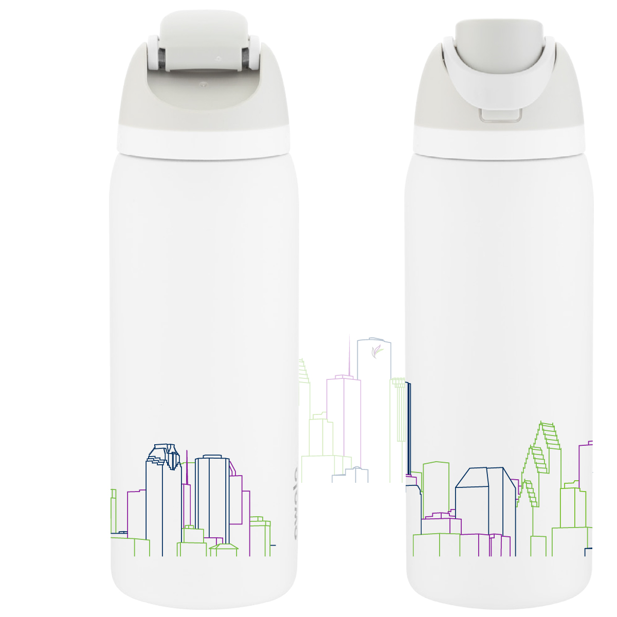 sku: BIQ39632 oz double wall 18/8 stainless steel thermal bottle with copper vacuum insulation, dual-purpose threaded lid, push-button locking mechanism, sip opening, built-in straw, and powder coated finish · for cold beverages