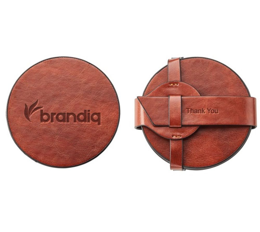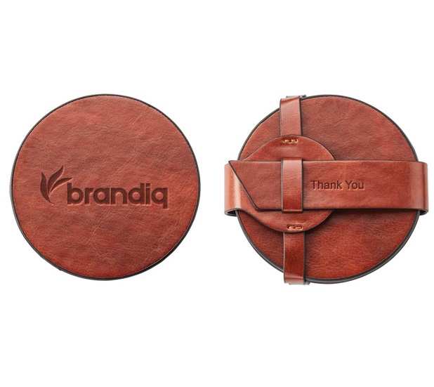 sku: BIQ211Four times the surface protection, four times the branding surface messaging. These elegant Fabrizio coasters are available in classic black and rich brown and will fit into any décor. Give this set of 4, secured in a vinyl flap closure, as a gift for use at home or in the office and the recipient will be grateful for their practicality in protecting surfaces from hot and cold. As these coasters are used over and over, your brand messaging will be admired for years to come.