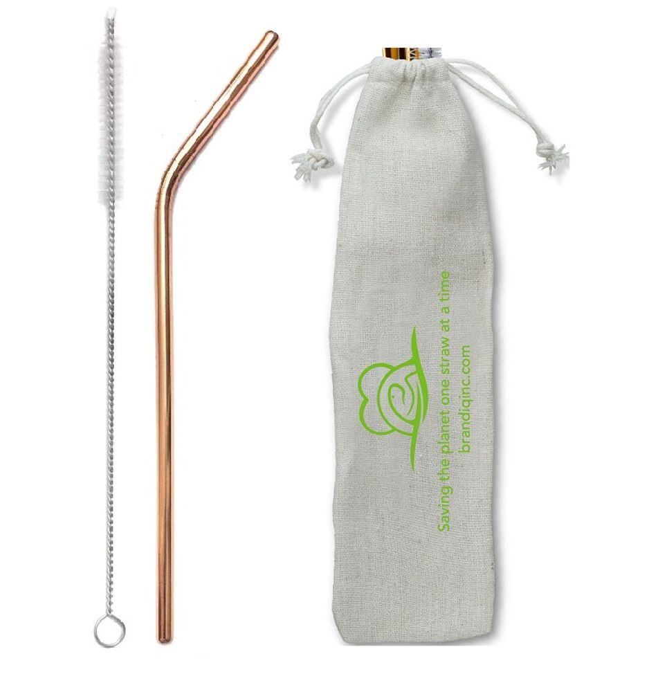 sku: BIQ249- Rose Gold Color Straw made of food safe 18/8 stainless steel. They are branded with the Brand IQ logo.